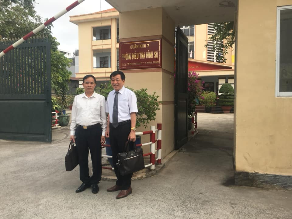Các luật sư của văn phòng luật sư Tất Thành làm việc tại phòng điều tra hình sự quân khu 7, Bộ Quốc phòng.